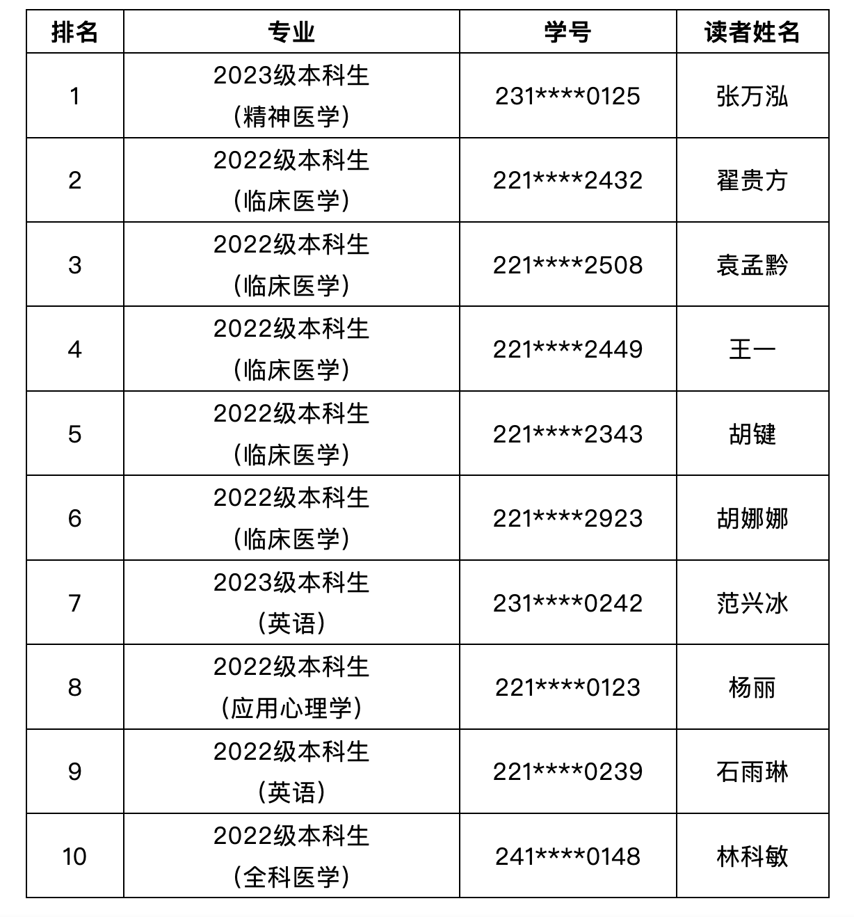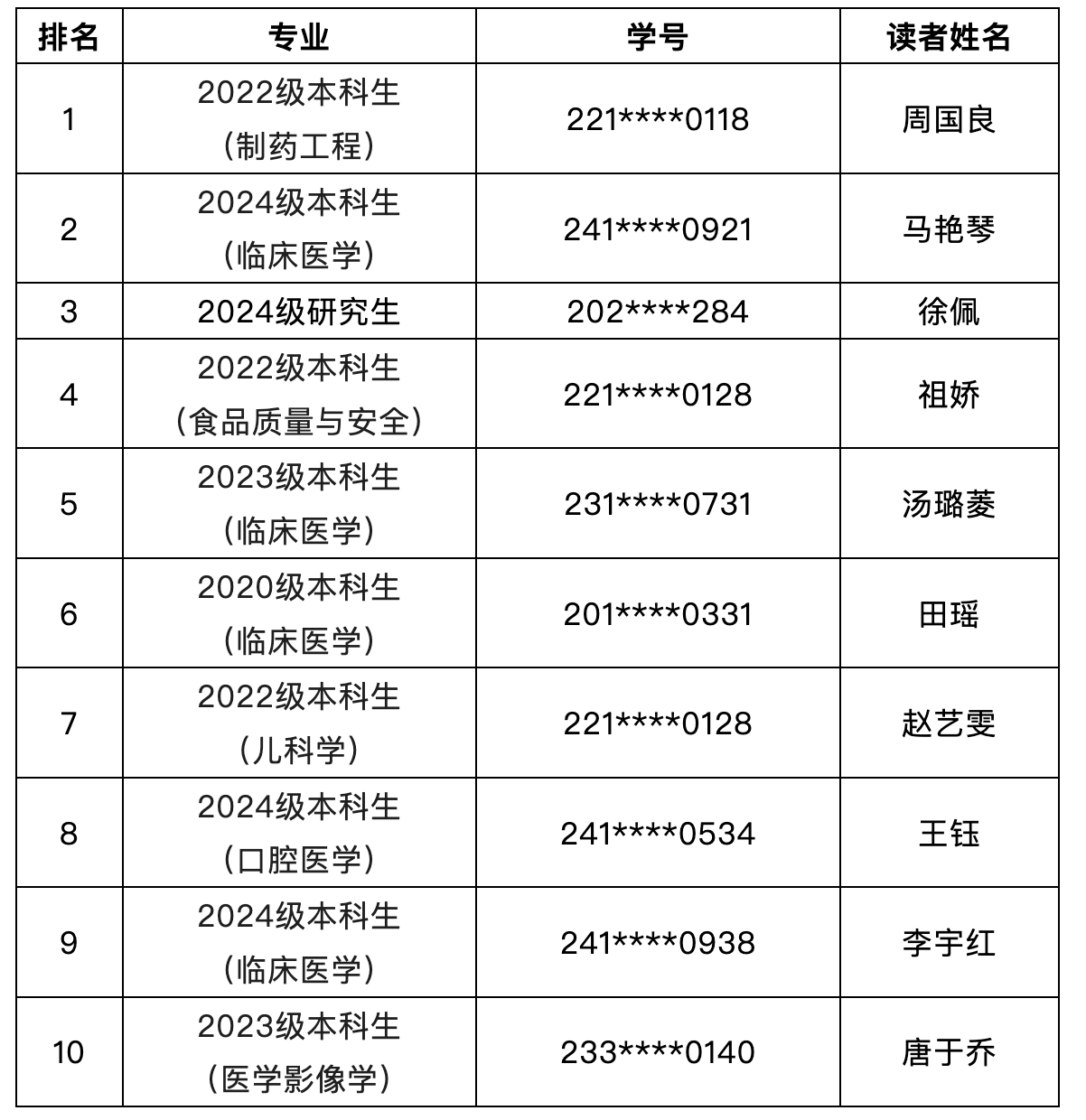 2025年6月“借阅之星”“在馆之星”评选的活动结果如下: