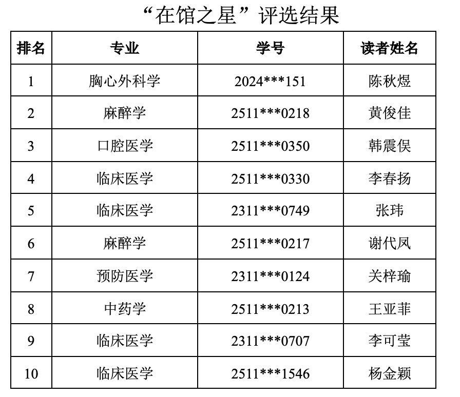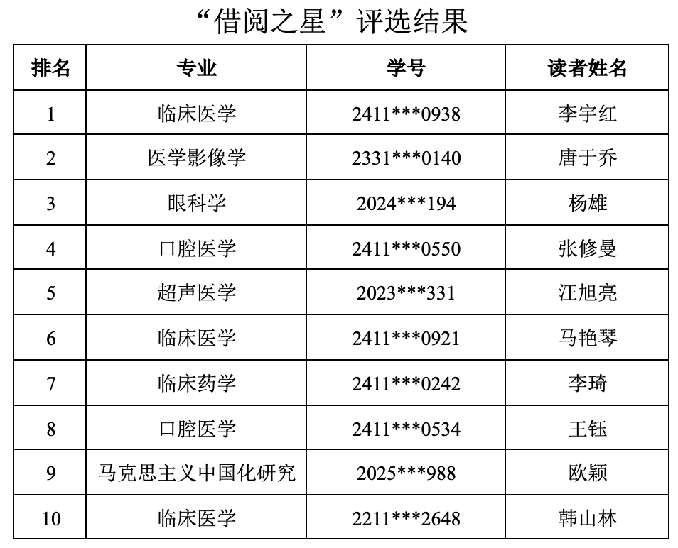 2025年9月“借阅之星”“在馆之星”评选的活动结果如下: