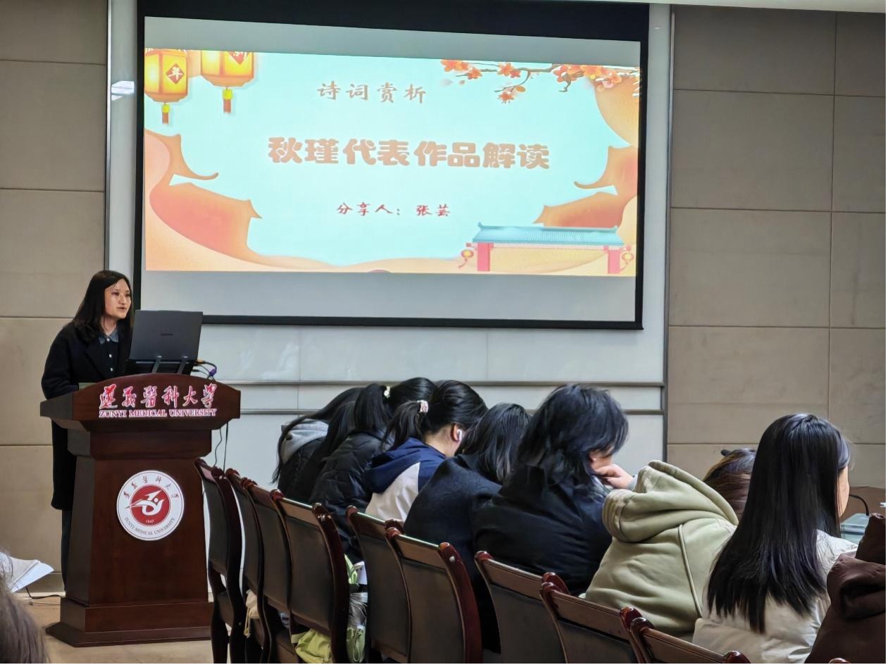 随后,张芸老师带来秋瑾的《满江红・小住京华》诗词赏析。通过播放视频,进行朗诵示范,引导同学们在理解诗意的同时,感受普通话的韵律之美,进一步提升文学鉴赏与语言表达能力。