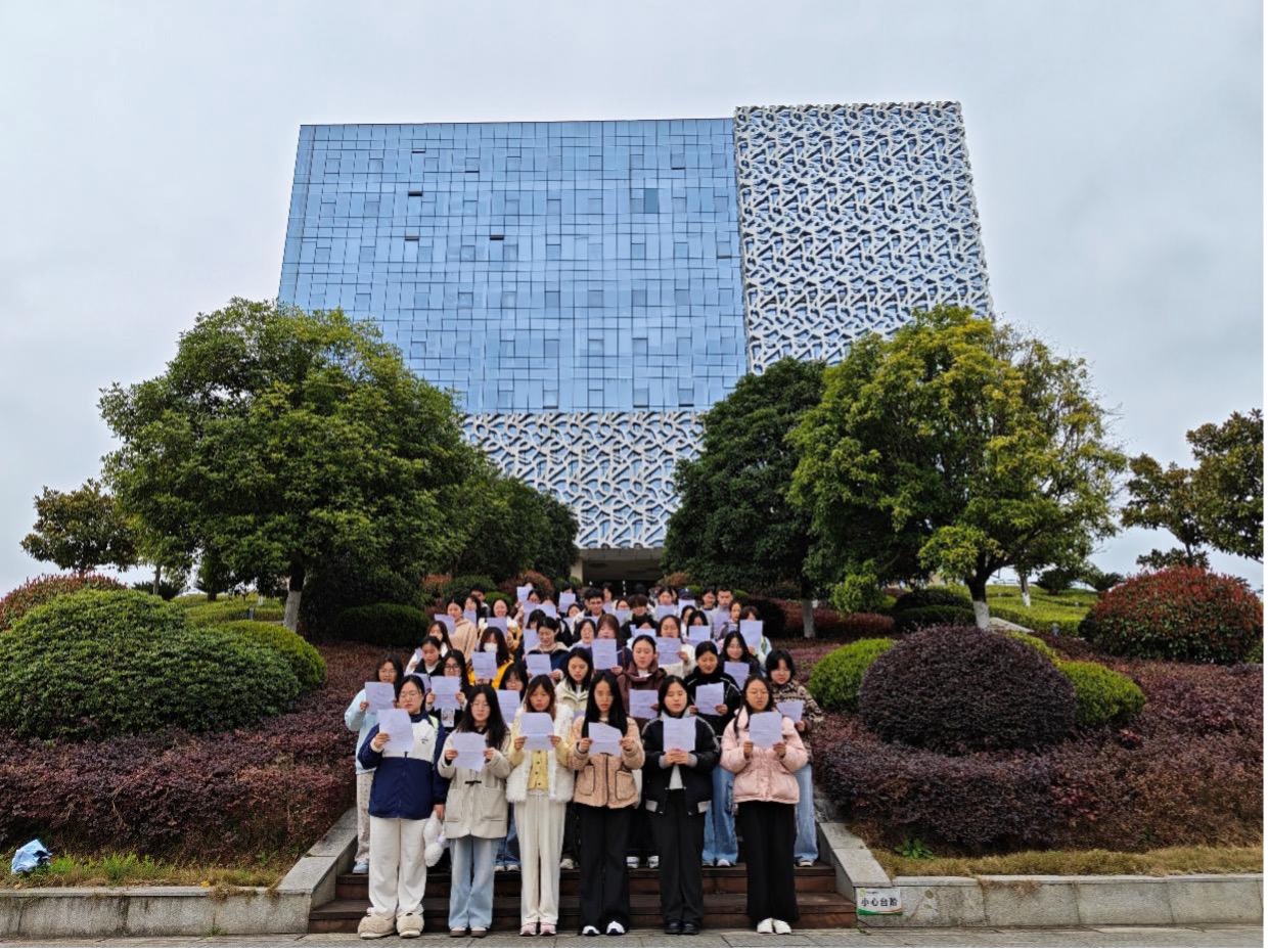 活动最后,全体师生移步图书馆外台阶,大家用清晰且饱含深情的普通话,共同诵读《九日感赋》《满江红・小住京华》《鹧鸪天・祖国沉沦感不禁》等经典诗作。铿锵有力的朗读声,既是对先烈的深切缅怀,也是对国家通用语言文字的生动实践。